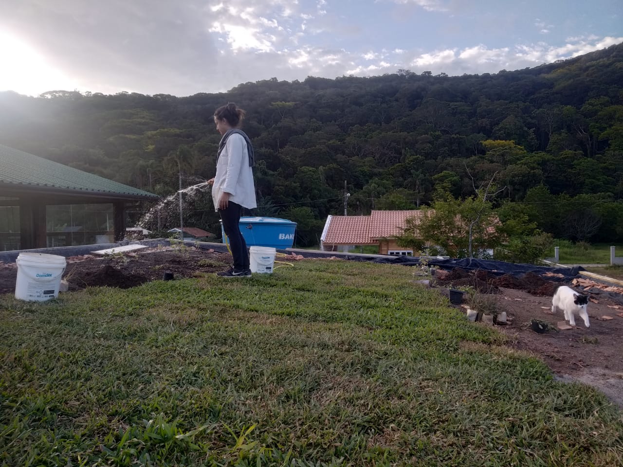 E muito importante tomar conciencia sobe a flora que agente escolhe para os nossos jardins. Quiz chamar atenção para essa espécie porque e uma planta invasora na região onde eu moro e poucas pessoas sabem disso. Então ela e a estrela do telhado verde na casa da Regina, assim que agente espalha o conhecimento, falando com os visitantes sobe ela e sobe a problemáticas do cultivo de espécies exóticas.