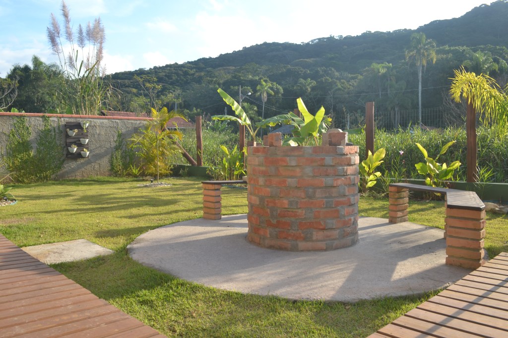 Gramado para brincar no sol + pergolado para beber um chá + espaço para se reunir num lual embaixo as estrelas + deck para assistir o pôr so sol + cantinhos para ler, dormir, admirar a paisagem + perfumes, flores e frutas para nos surpreender e atrair pequenos visitantes!